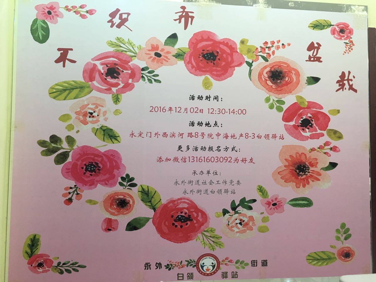 | 地点: | 永外街道西片商务楼宇工作站--白领驿站 | ||