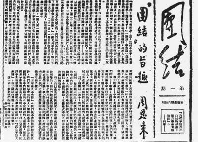 在《团结》上刊登的周恩来为其撰写的创刊词。