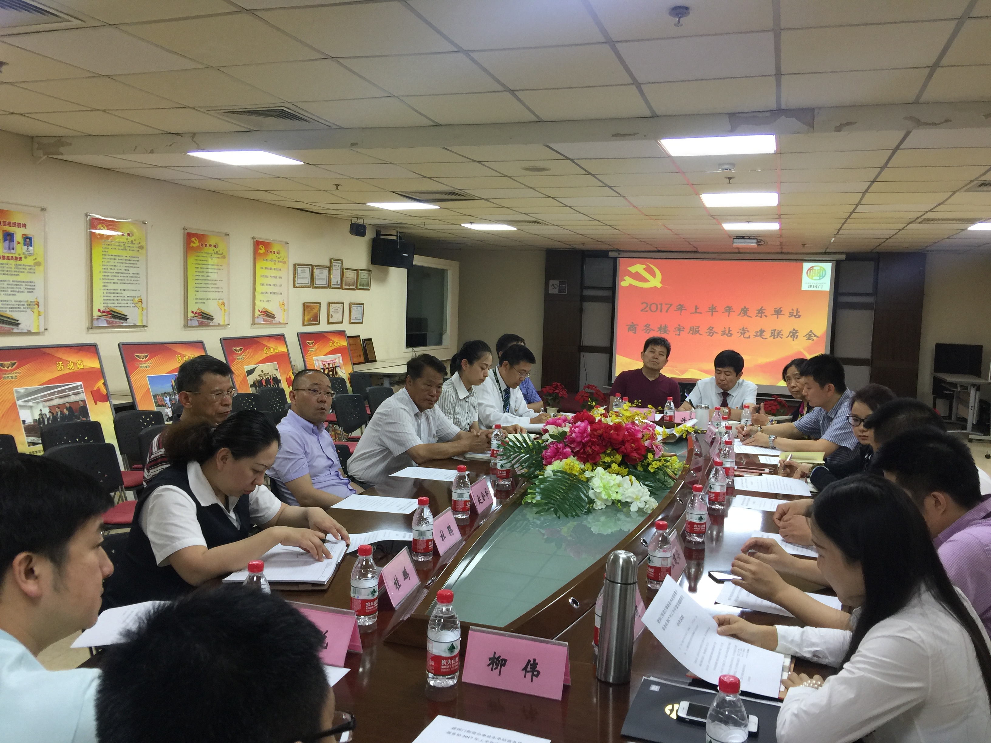 2017年6月14日下午,东单商务楼宇服务站在锦辉控股(集团)有限公司党支部电教室召开了“2017年上半年度党建联席会”,辖区内六个非公组织党支部书记、18家物业、企业领导到会。