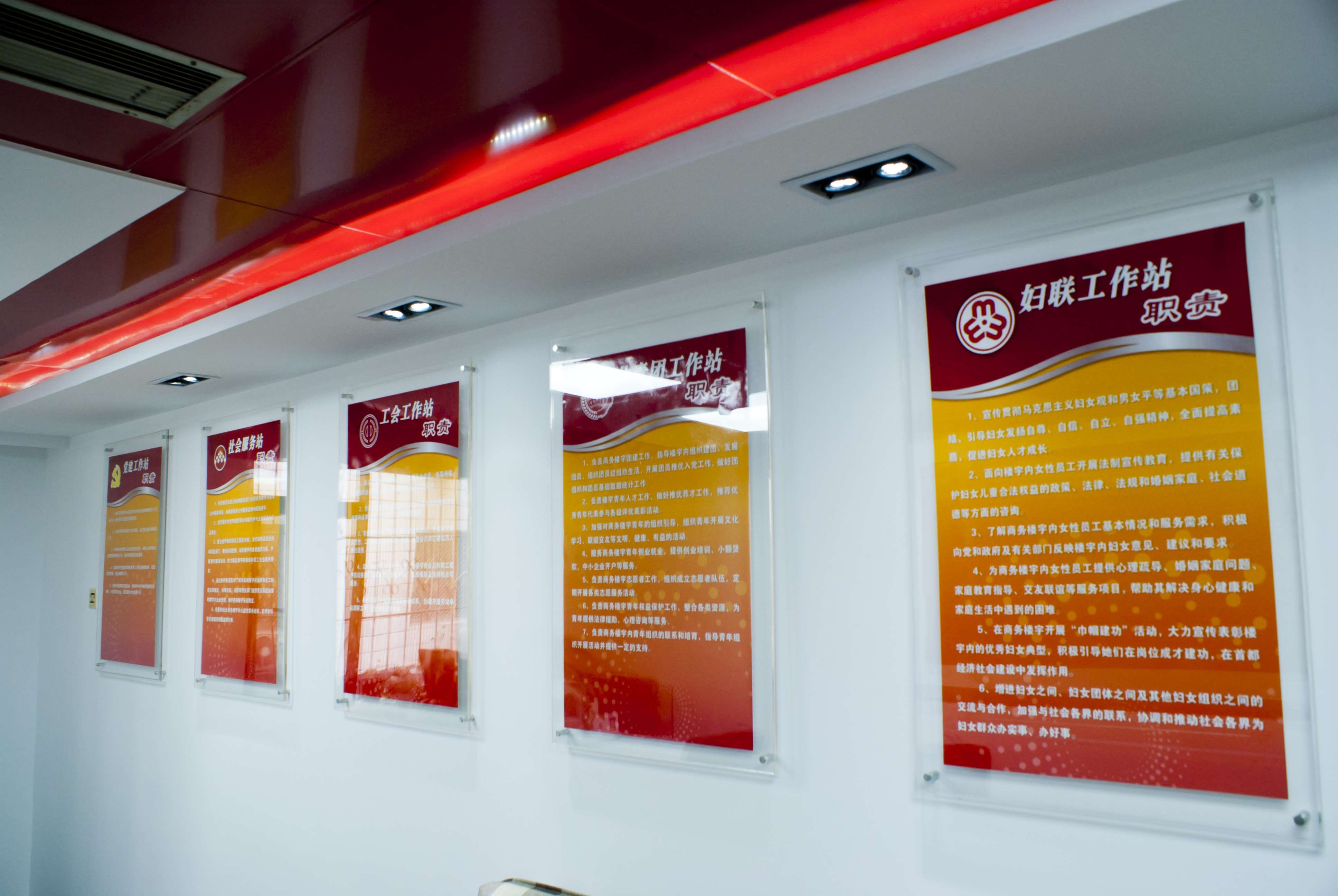 一是有设施齐备、面积达标的办公用房。自2014年在星海宏昌大厦租赁工作站办公用房的基础上,又采取多方查找,实地探访、与物业反复沟通、协调的方式,分别在伟图、亿兴、领行三个大厦,签署规范协议,落实工作站办公用房。目前,四个工作站建筑面积近140平方米,先后投入资金近50万元,并依照东城区委社会工委《商务楼宇工作站规范提升工程的实施方案》要求,所有工作站进行了全面升级改造,在对工作站进行装修的同时,升级电脑、打印机、传真机等常规硬件,将党旗、工作站职责及楼宇个性化元素融入统一装饰风格当中,确保工作站“醒目而不突兀,亲民而不另类”。目前5座商务楼宇工作站全部通过区委社会工委验收,伟图、星海宏昌2个工作站被评选为“示范站”。同时,领行国际商务楼宇工作站作为参评“北京市商务楼宇工作站示范点”已通过审核,正在等待验收。
